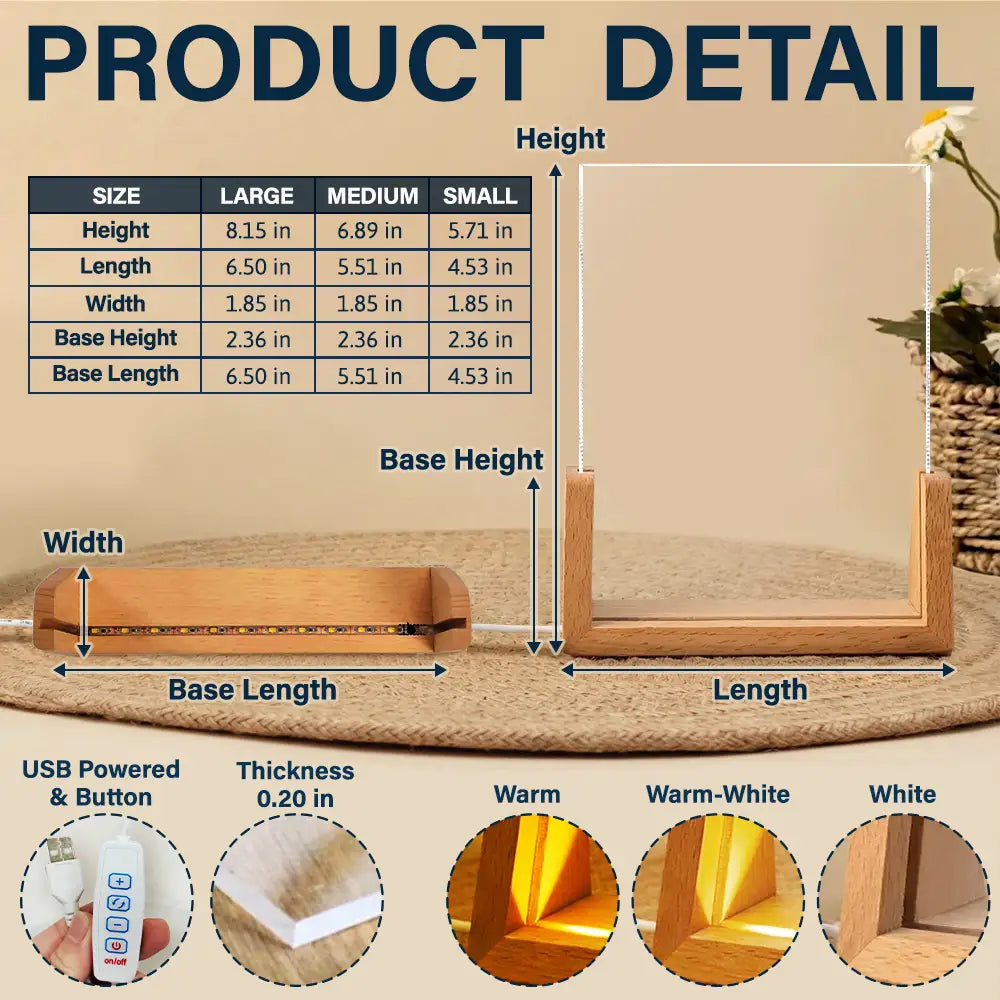 - High-quality material - Crafted with a wooden base for stability and a clear acrylic plaque for a clean, modern look. The natural wood adds warmth, while the durable acrylic beautifully displays the design and allows light to pass through evenly.