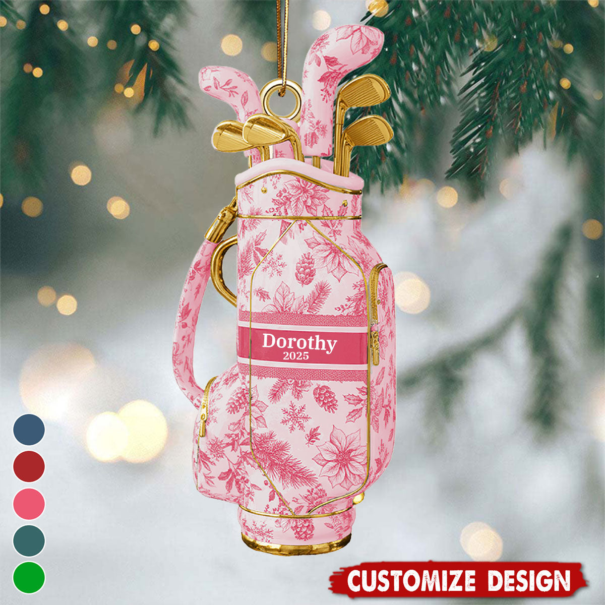 Golf Bag Toile de Jouy Custom Shape Acrylic Ornament - Personalized Gift For Golf Lovers