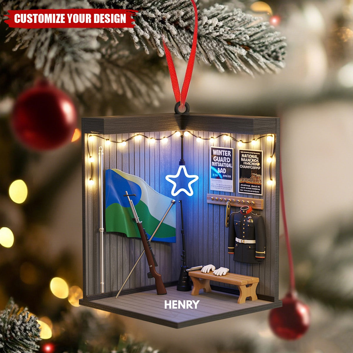 Military Christmas Ornament-Patriotic Soldier Uniform, Flag & Rifle-Personalized Patriotic Christmas Tree Acrylic Ornament