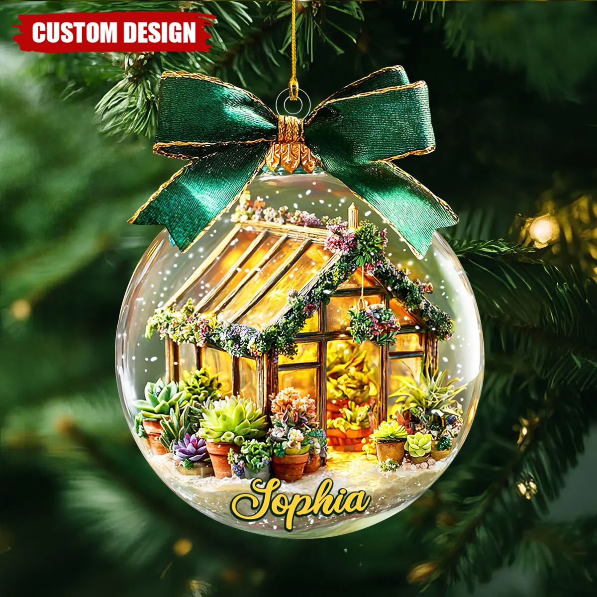 Personalized Greenhouse Ornament, Acrylic Succulent Garden Christmas Ornament, Custom Name Plant Lover Gift, Garden Lover Gift