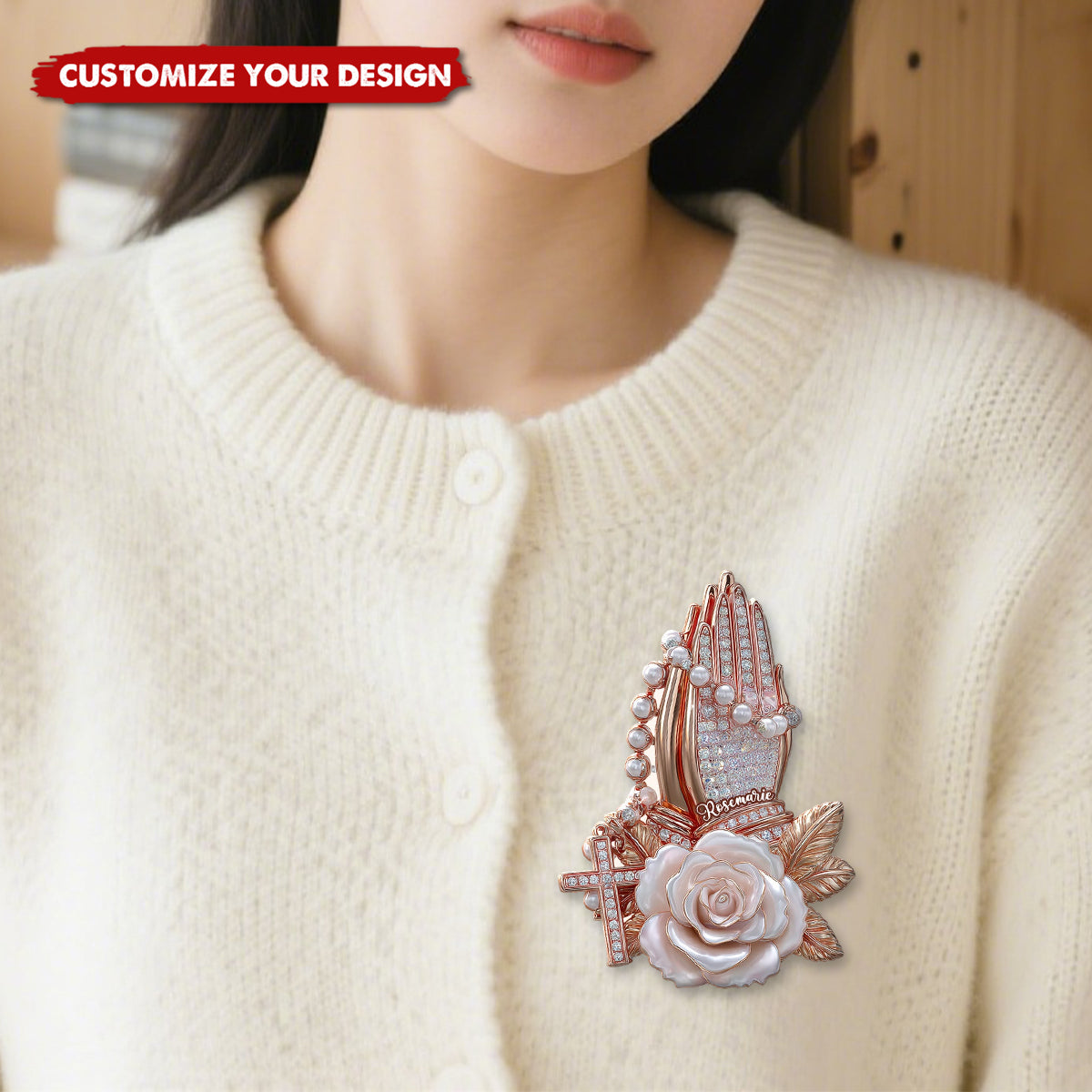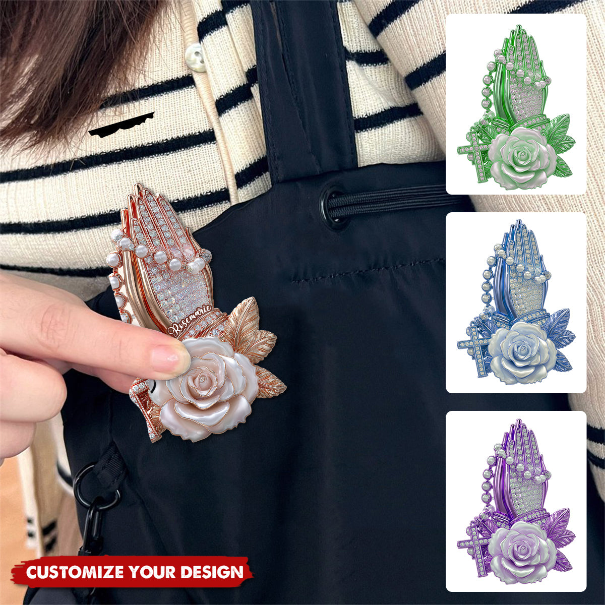 Praying Hands With Roses - Personalized Christian Pin