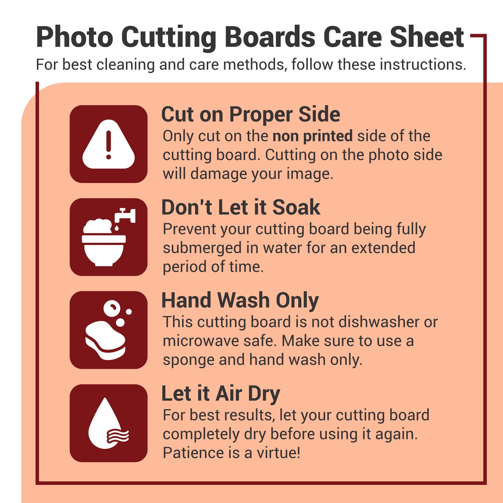 • Your personalized photo is sublimated onto the cutting board