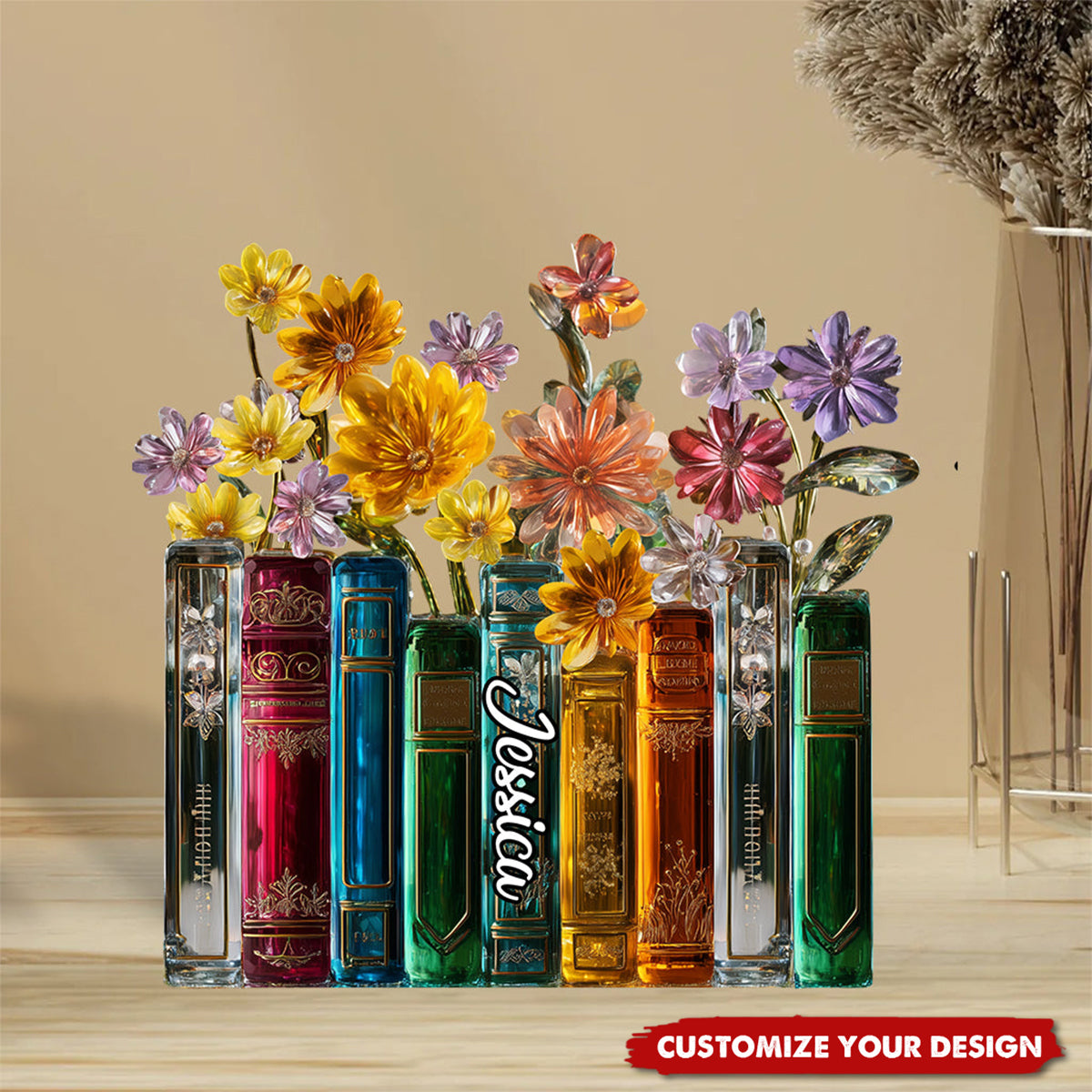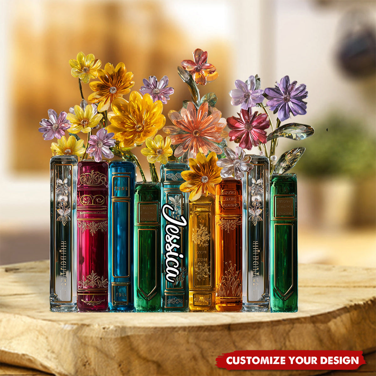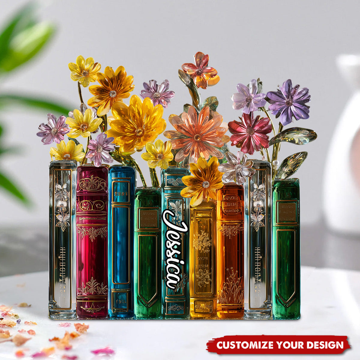 Books And Flowers - Personalized Book Custom Shaped Acrylic Plaque