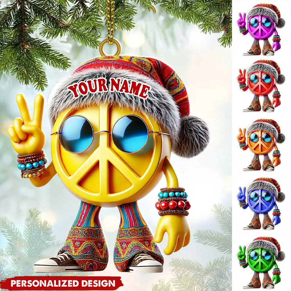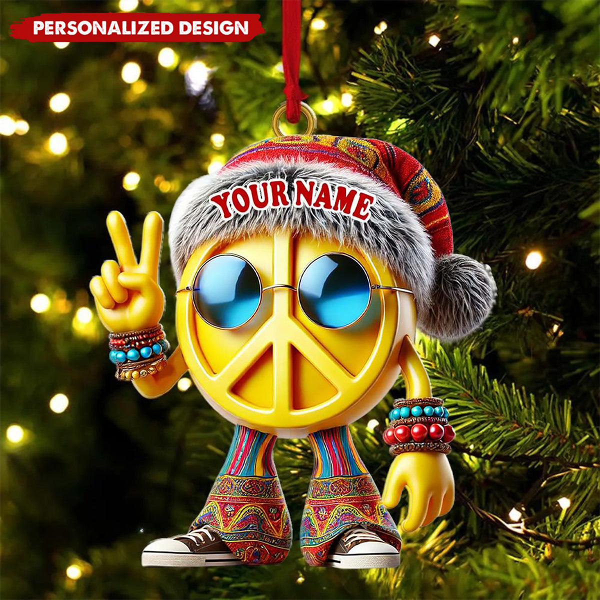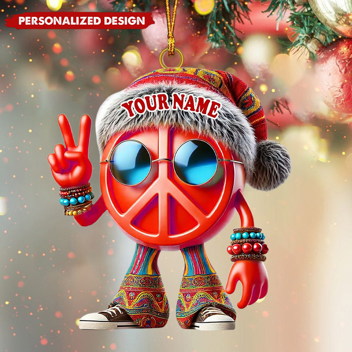Custom Name Hippie Love Ornament, Christmas Gift Decoration